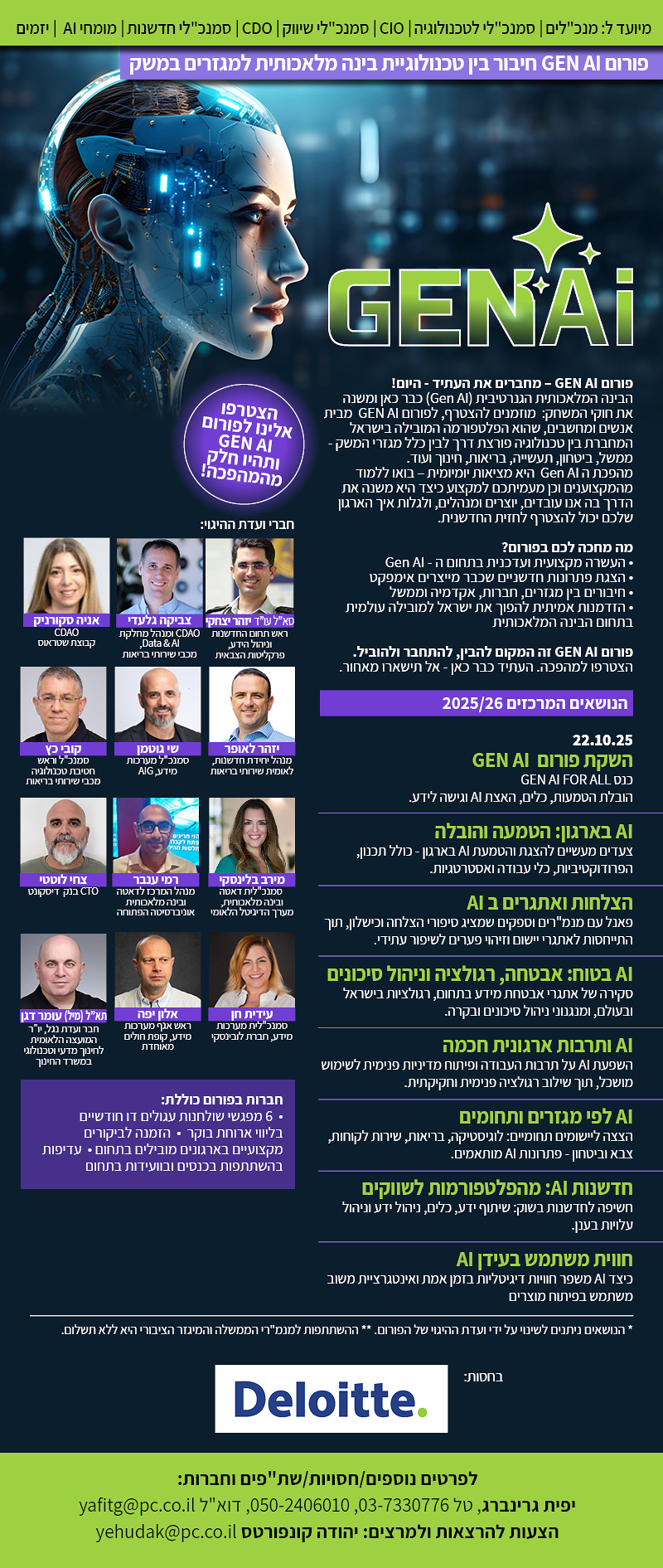 פורום GEN AI - ההזדמנות שלך להבין לעומק את ההשפעה העצומה של GEN AI